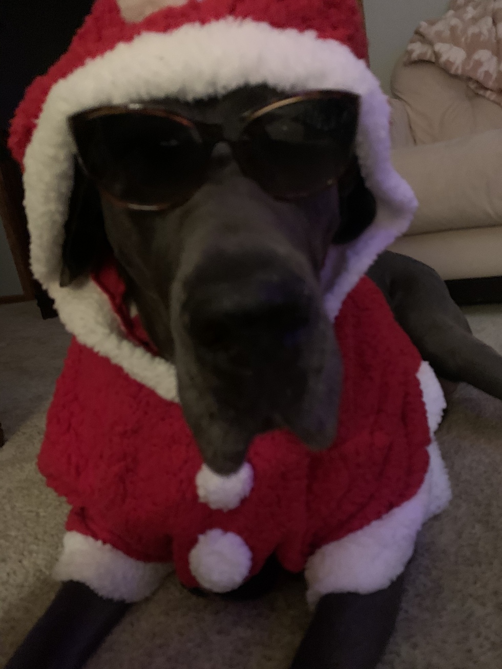 Lou is a 4 year old Great Dane. She’s very affectionate and fun. She loves to put her head under your arm as a not so subtle hint to pet her. She’s looking bad in this picture but she really is afraid of just about everything including her own reflection. Vote for Lou!