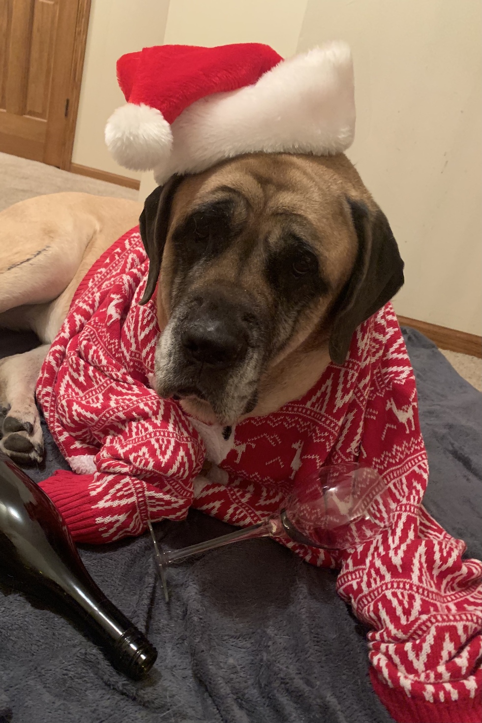Corey is an 8 year old Mastiff. She’s had a bit too much Christmas cheer tonight. We’ve all been there. Tis the season! She is an amazing dog. She’s quiet and loving, and oh so drooling, but she’s always on the lookout. She would give her life to protect us. Vote for Corey!