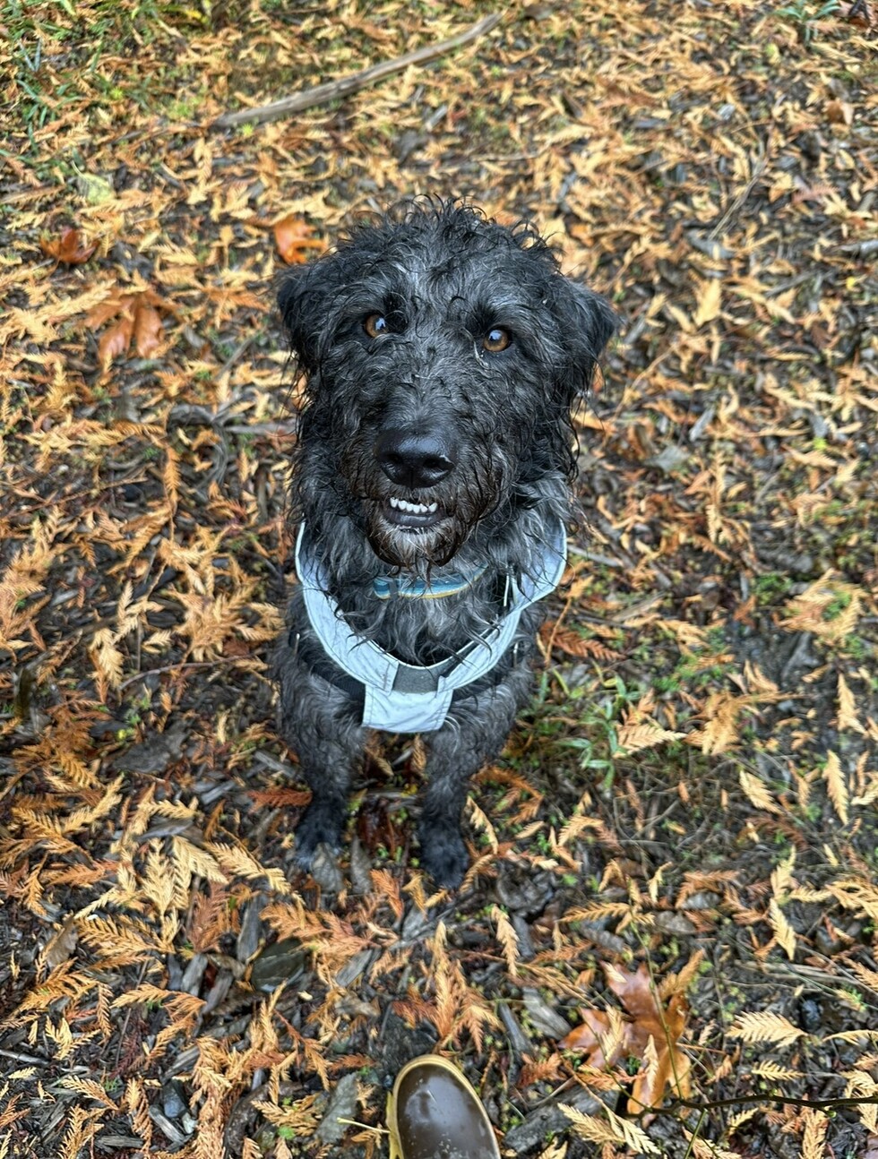 When we first met our little raven, his rescue group had been mistakenly been calling him by the wrong name! How could such a sharp, vocal, & food motivated dog be named Tongo? There was nothing left to do but to return his name to him. Dotson, Denaakk'e for raven.