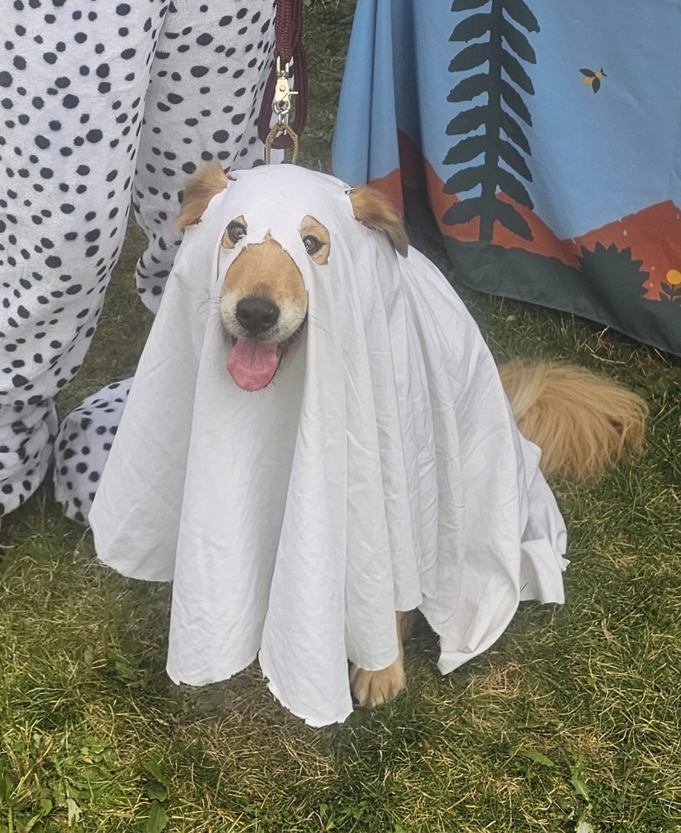 Ophelia was picked up as a malnourished stray in Texas, and was met by her family in Colorado who gave her lots of food and love and her hair grew and grew! Now she's a happy healthy dog living on a horse farm where she can find all the smells and all the fun