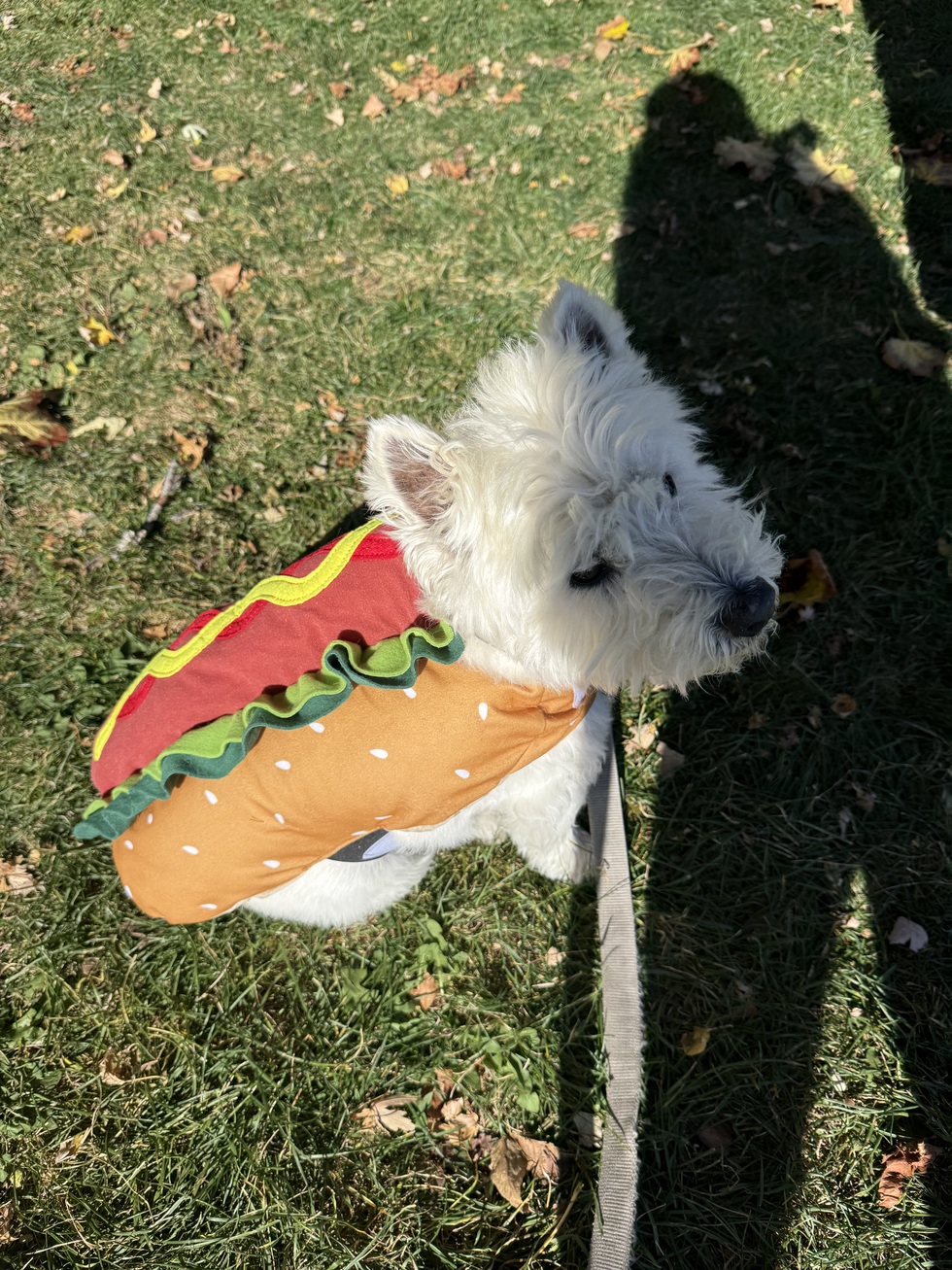 Elton is a 9 year old West Highland White Terrier and the sweetest boy ever. I adopted him from the Humane Society four years ago and he has been my best friend ever since. He is very quiet but has big feelings and opinions (which he shows in his general stubbornness). He loves to go on hikes and loves it even more when I put him in his backpack carrier so he can just be along for the ride.