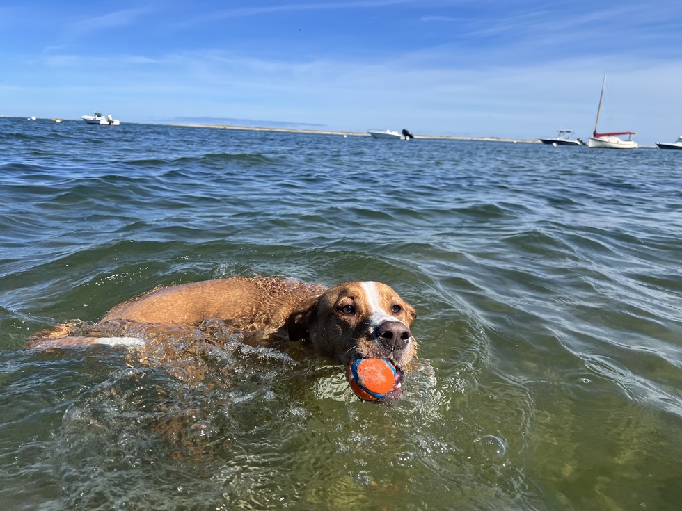 Luke used to be terrified of water - he'd hide under the bed if anyone went in the pool. Now he's found the courage to rescue his ball from the ocean, and likes it!