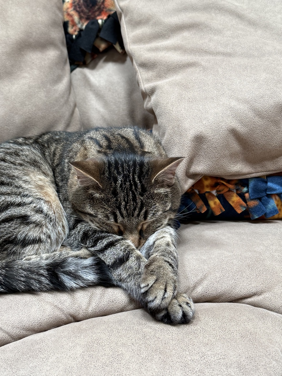 Daniel was put into Katarina’s litter (Katarina is our other adopted cat) and the two became inseparable. So foster mom Jennette said they had to go together- and that was not a hard decision for me at all. They have been a joy since we adopted them about 5 years ago. Daniel is just a love and the most handsome cat I’ve ever had- longest tail and softest fur, too! AND he takes the best pictures as evidenced here