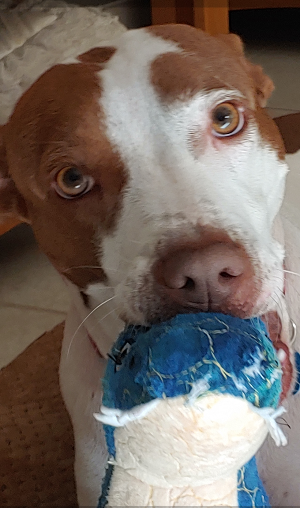 Sunny was found producing milk but no puppies. She needed a home that gave her lots of love and room to run. She is spoiled beyond belief with beds, couches, a fenced yard and doggy friends to play with.