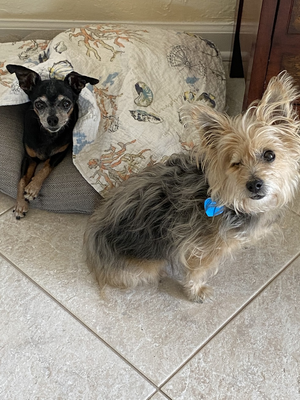 Ziggy and Phoebe, formerly Sammy and Tinsel, are two senior pups adopted from APR. Both are enjoying their retirement in Delray Beach.