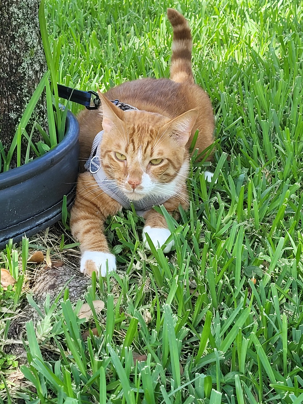 Blaze was adopted from Abondoned Pet Rescue. He found his forever home and fits in perfectly. He is a very smart cat who loves to play and hang outside, on a leash of course.