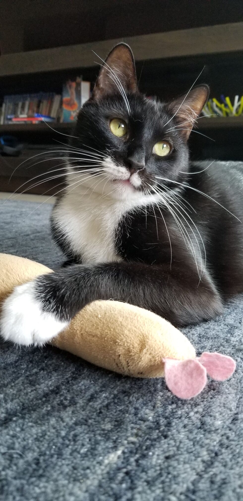 We adopted Turks from APR last Spring. He had been in the shelter for several years, but he was just so sweet when we visited that we knew he was the one. He loves to cuddle and chase his favorite toy - a piece of string!