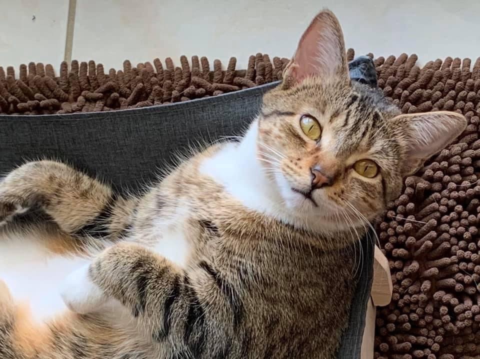 Lilly was a stray kitten living outside at a friend’s apartment complex with her Mom who kept having litters. I picked her up from my friend’s place and brought her home because there was a storm coming. I told my husband we’d keep her, get her healthy and find her a home because I wasn’t sure how our dog would react. Within 1 day they were playing and 2 years later they are still BFF’s. The best news is my friends rescued and kept Lilly’s Mom and now she’s living the good life in Georgia.