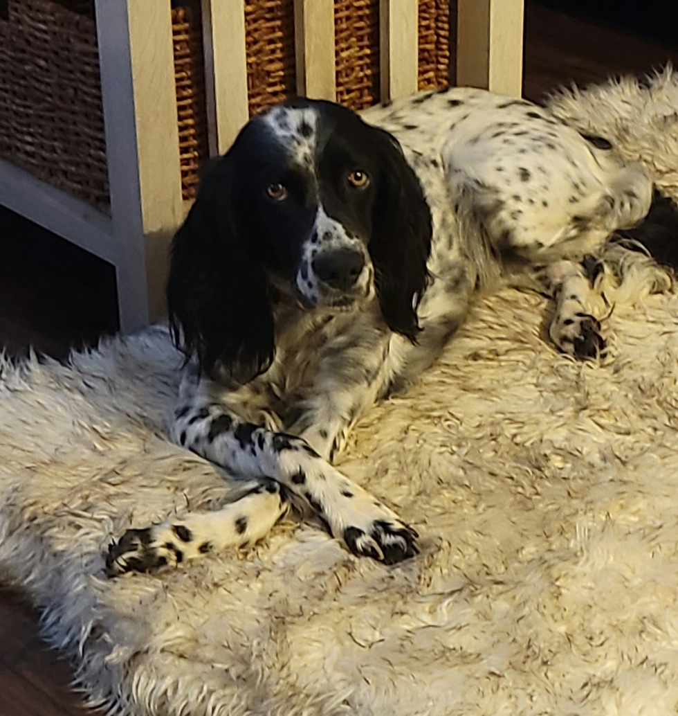 Ella, formerly Starr, came from the hunting preserve in GA along with 5 other Setters. She's only two years old, and she's very shy and skittish, but I'm starting to see some improvement in her comfort level in just two weeks. I signed up for "Foster to Adopt", but I knew she was mine from the minute she got in my car!