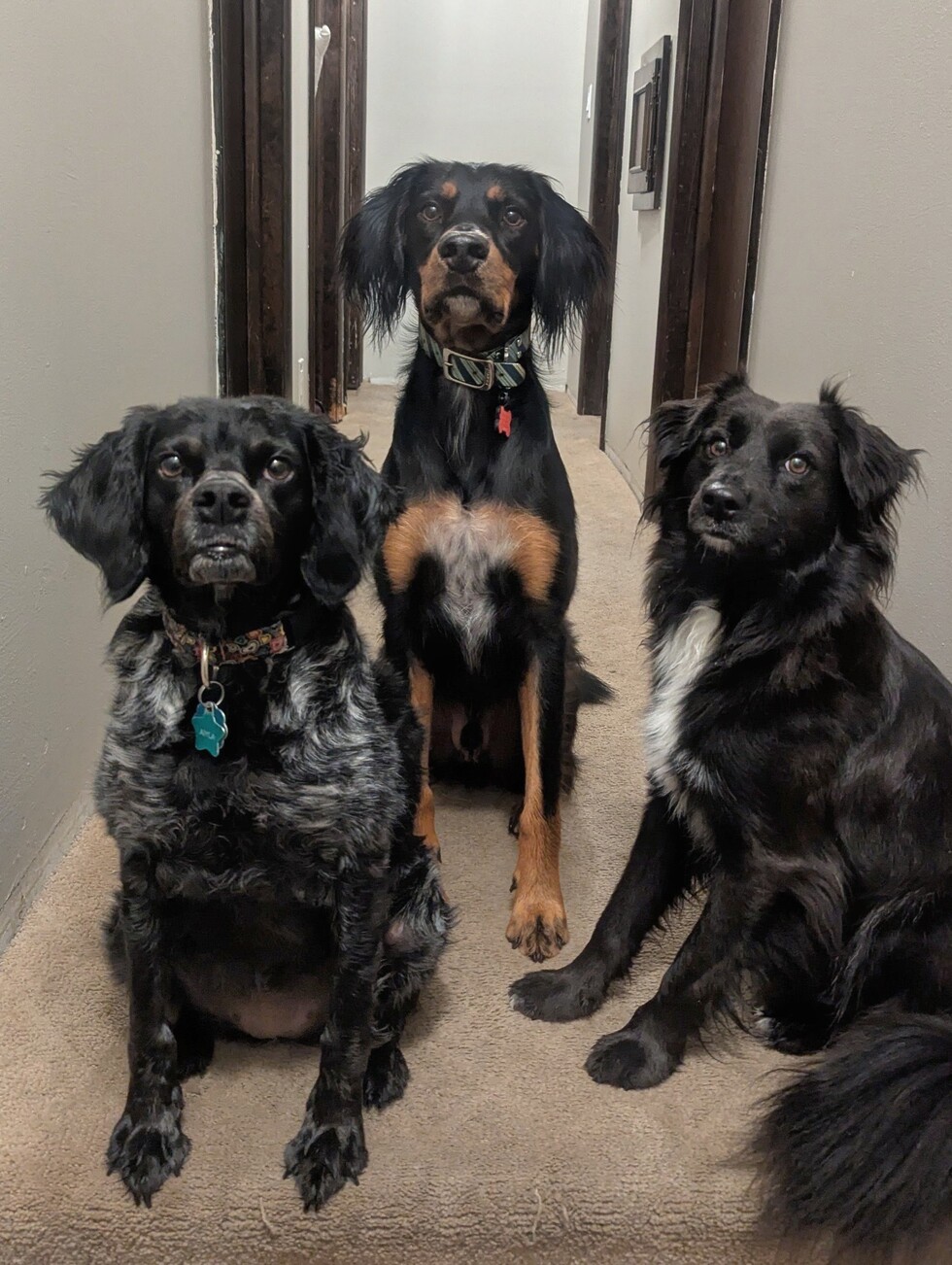 Aiyla, formally Amie from Turkey. Chet, formally Shawn. Bear, formally Bart. Chet and Bear are foster fails and Aiyla has been a frequent house guest from time to time when her dog momma is away. These three were lucky to get honorary English Setter status to join the ABESR. I am the fortunate one to call two them my fur kids!