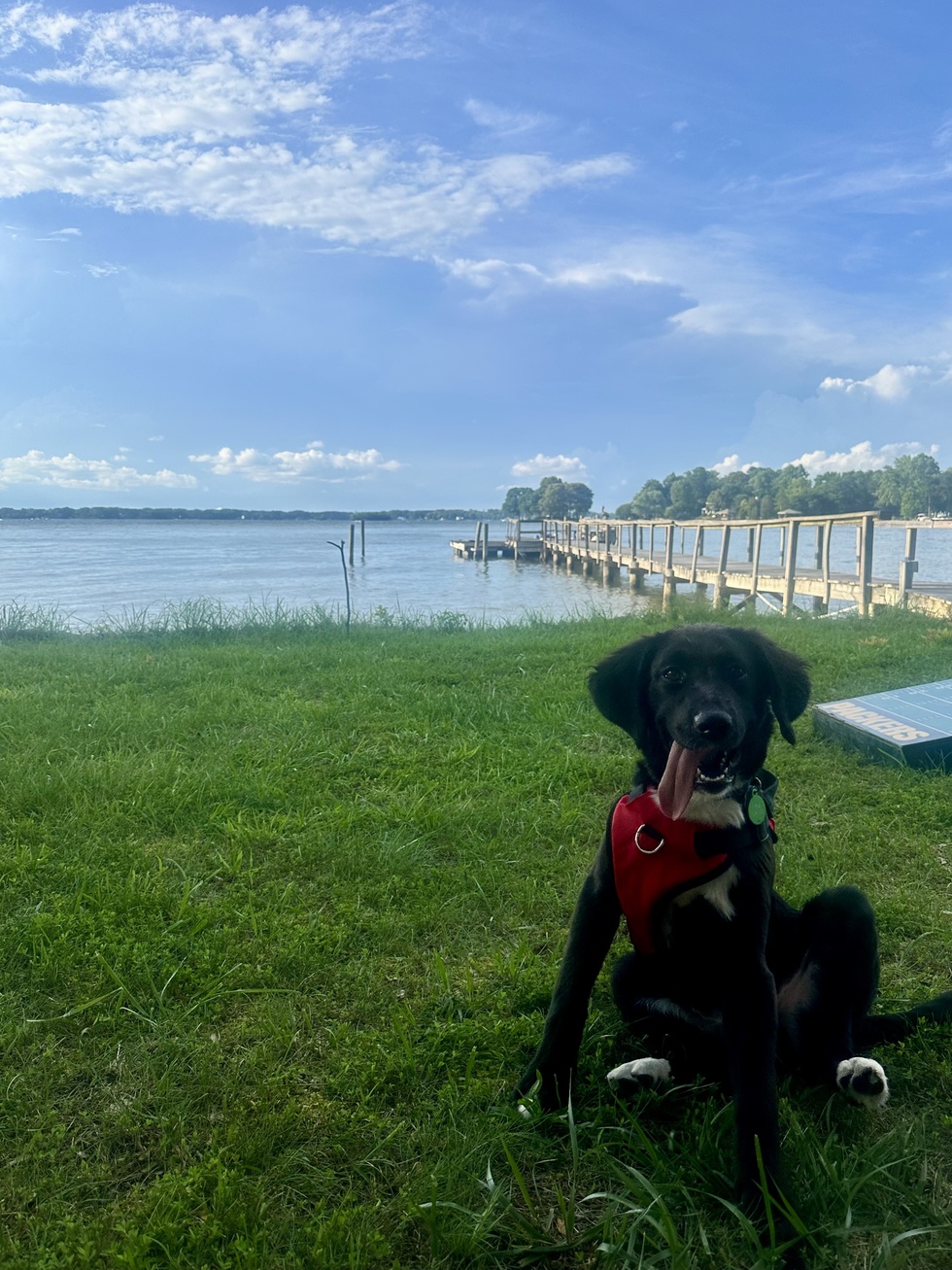 Ripple came to us from his foster family in Iowa. He is a sweet boy who made a long journey to be apart of our family in NC. He loves the lake and being with his people. We could not have asked for a better dog.
