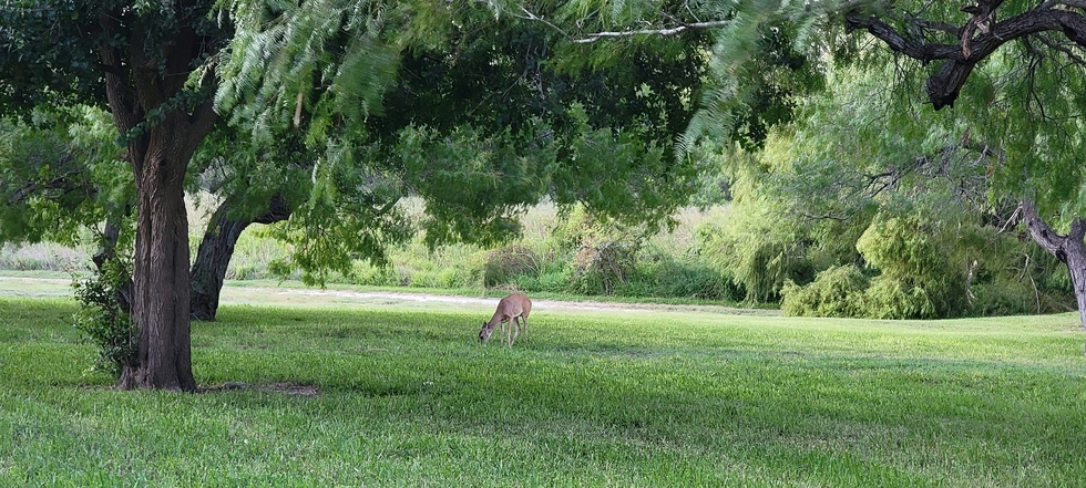 Doe Grazing in the backyard close to the wildlife area in South Texas