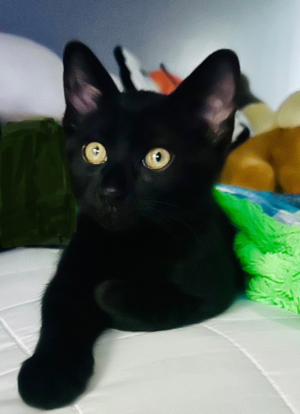 We adopted Todd from the animal shelter and he has brought such joy to our family. He is an affectionate little kitty. He loves his cat/dog siblings and human siblings.