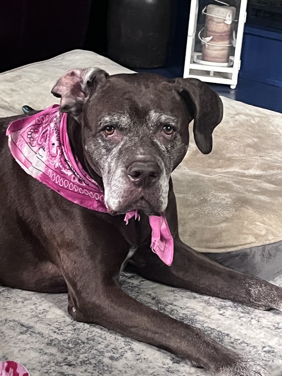 A little about me...Our sweet Anna was born in our living room , I caught her in a towel. That moment I knew she was ours forever. We love her dearly always running with a ball in her mouth dropping it down at your feet to be thrown. Loves to make all kind of crazy noises telling you she wants something. She is the boss of when it’s time for all of us to go to bed. Anna loves when the grandkids come over because she knows she will get all the droppings on the floor underneath them . And if she’s really lucky a lick of ice cream from a cone shared with one of them. Lol