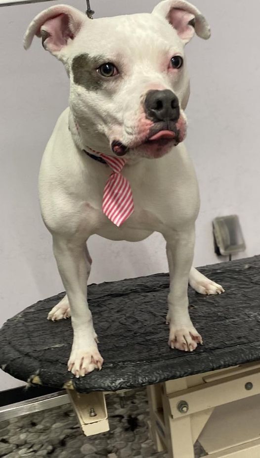 A little about me...Jackson was a transfer to Kent County Animal Shelter from down south. He was adopted once but sadly couldn't remain in that home due to breed specific bans. We adopted him and have never looked back. He does have one flaw that I am afraid we will never train out of him. He would gladly cuddle you for 100% of the day if possible.