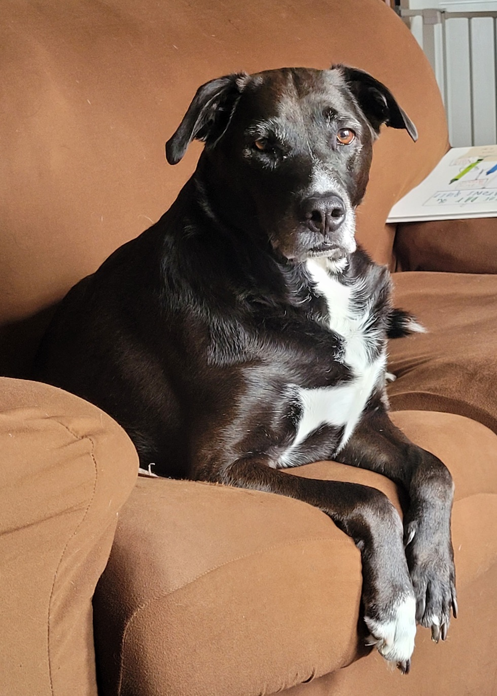 I was a rescue puppy from the south before I was adopted by my family almost 7 years ago. I love sleeping on the sofa and eating. I love my family and they love me, even when I steal their food.