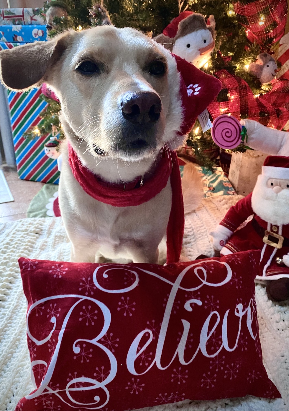 Stella was adopted in 2017. Her mom was a stray and was rescued with her litter of puppies. Stella is a shy but sweet girl. She tends to frighten easily but has grown in confidence since we adopted another adopt a stray pup,Luna , in 2019. Stella has great mothering instincts and enjoys the foster puppies we take in. She also enjoys her weekly play dates with her pack.