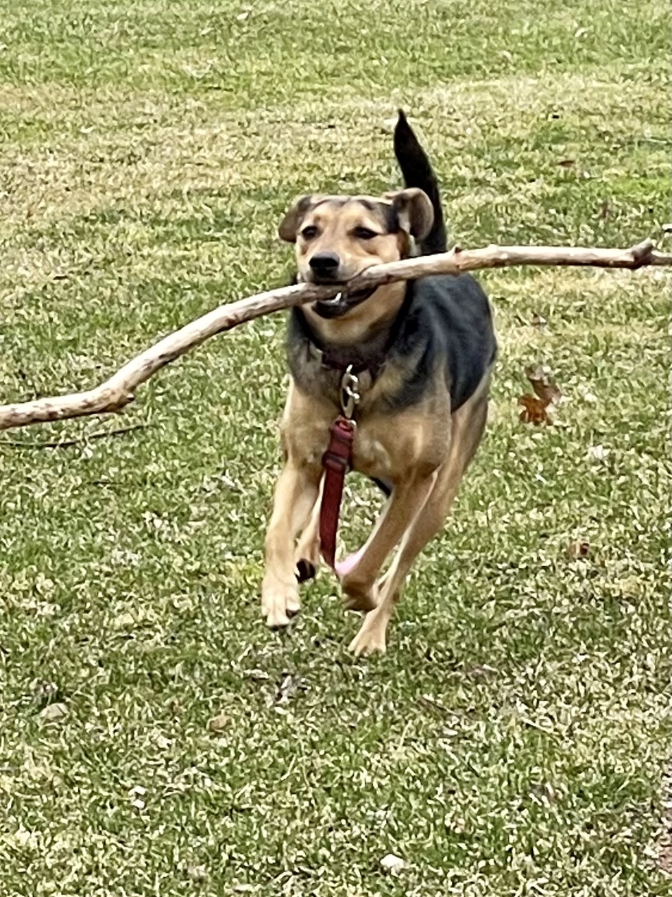 Tessi is a one year old hound mix female. Born around May 10,2021. Found on the side of a highway and rescued by Adopt A Stray Rescue. She is fun , loving and full of energy. Loves to play ball and carry around the biggest stick she can find ❤️