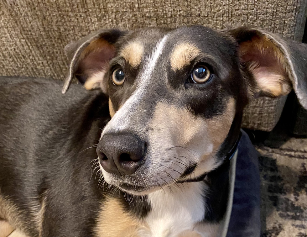 Dwight was found alone in a remote wooded area of Arkansas and now lives comfortably on “his” couch in Massachusetts. He’s afraid of loud noises and the dark, so he sleeps with a nightlight.