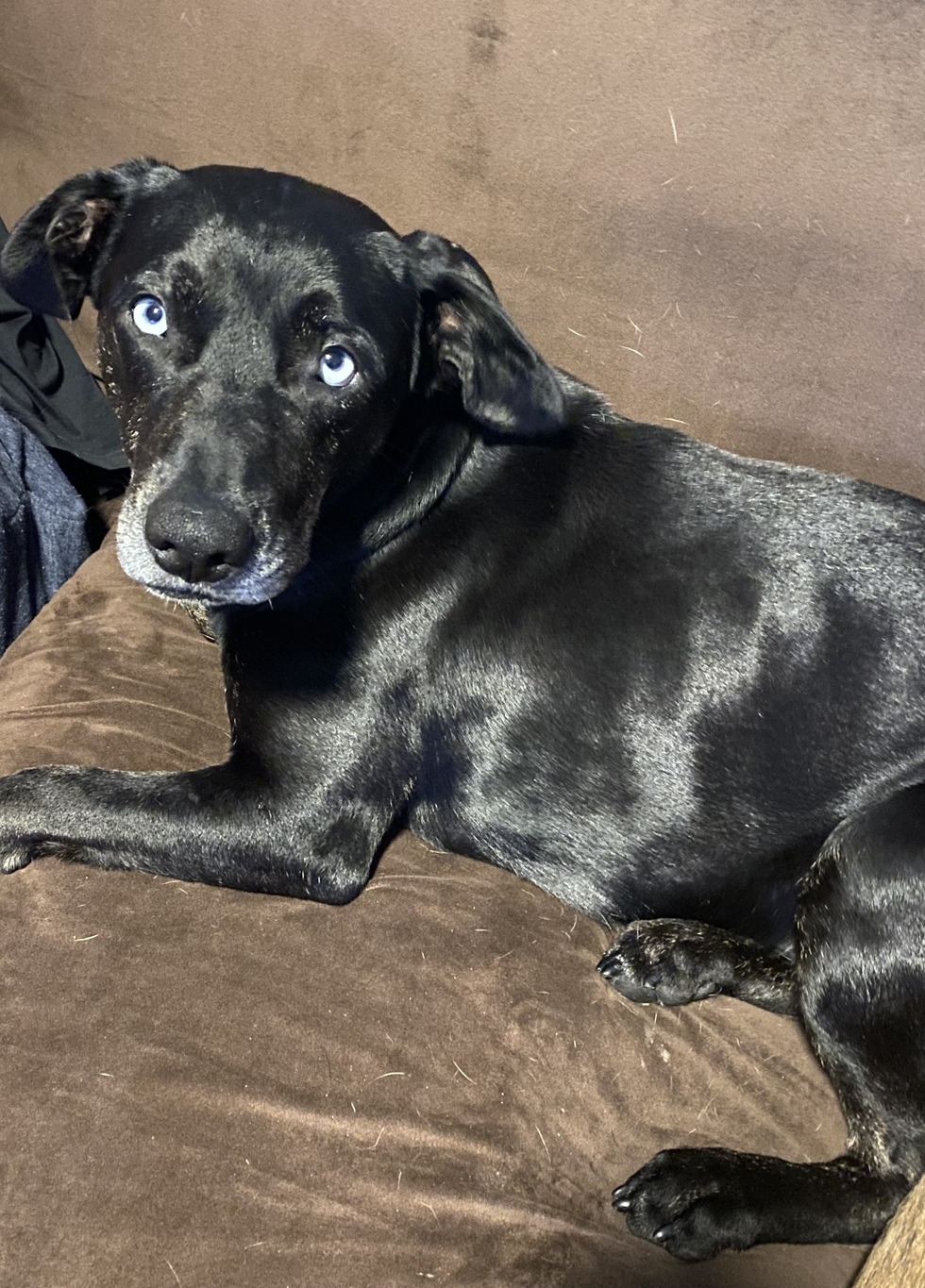 Maeve came in as a stray and was fostered. She loves to give kisses, loves to swim, and LOVES playing ball with her Chuck It ball.