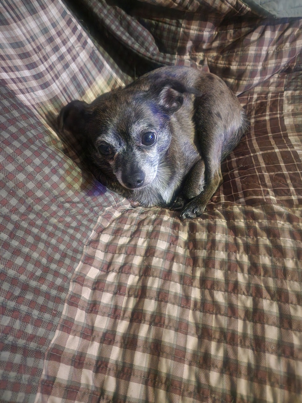 This is Lilly she was found out in the woods lucky people found her and took her to humane society where I adopted her when no one claimed her. She was so scared and cold and took a little bit to warm up to us now she's spoiled and put on weight . They really didnt know her age so guess around 4 or 5.