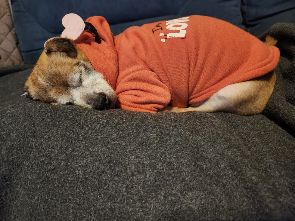 At 12 years old, Abe was found abandoned in November 2023 near Wausau. He had one good eye, 3 teeth and little chance of survival. Luckily a police officer found him and brought him to the local humane society. When I saw his picture, I knew I had to meet him. It was love at first sight (for me, he wasn't so sure). 3 months after adopting him, he lost his 3 remaining teeth, developed bladder stones, and his eyes literally turned white over night. He was diagnosed with a rare autoimmune disease, and for his comfort, had a double enucleation. Luckily his bladder stones were broken down through his new prescription food, and he did not require a 3rd surgery! Abe is the sweetest, cuddliest little boy ever. He love everyone he meets, and I could not have asked for a better friend!