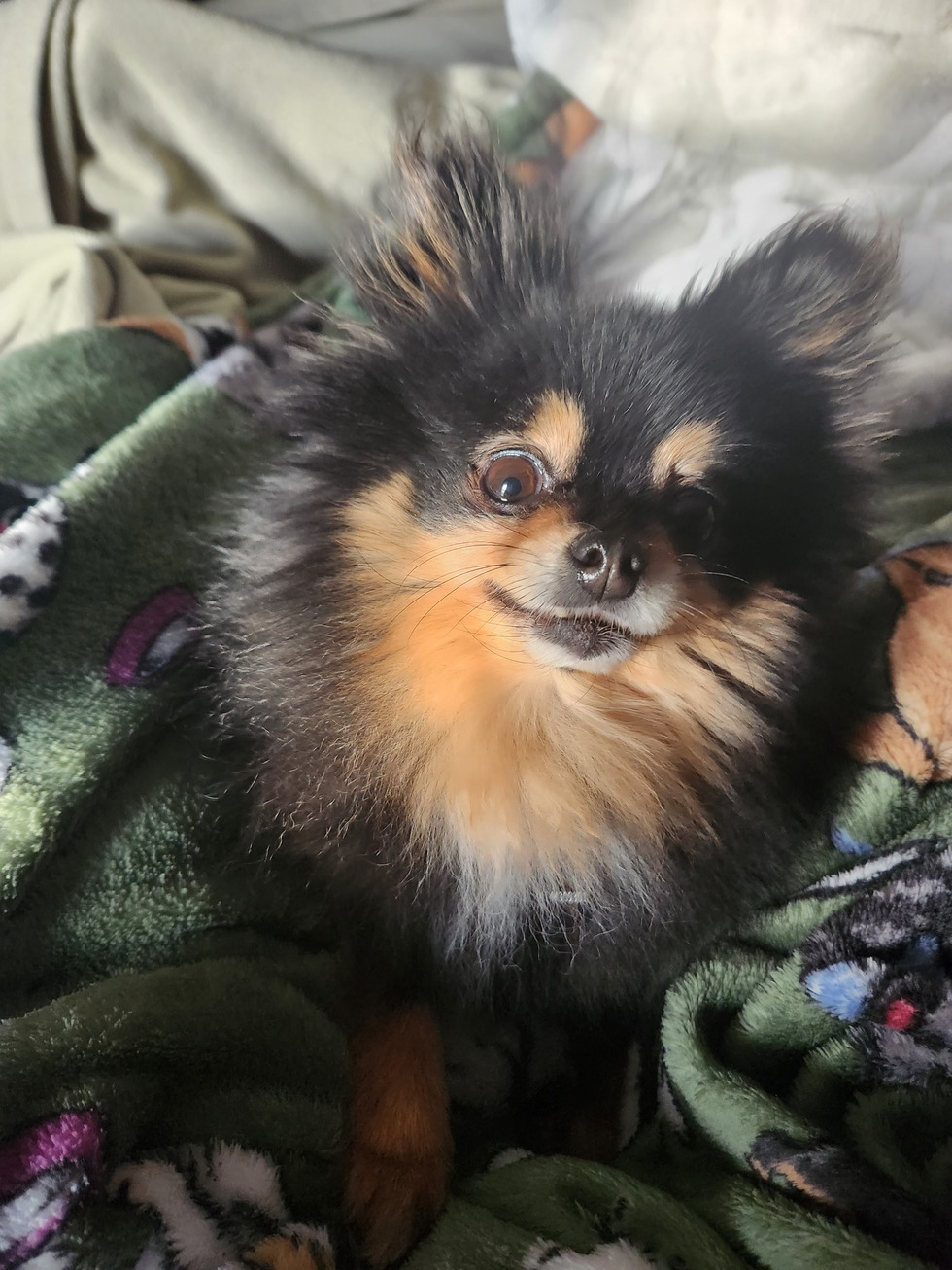 We adopted Winnie from Albert's Dog Lounge almost 6 years ago. She was at a puppymill , giving birth twice a year for 4 or 5 years, with 1-2 puppies per litter. Ever since rescuing her, I tell her "no more babies for you. You are my baby now!" She is a big sweetheart at only 5 lbs. She also likes to think she's my bodyguard!😁