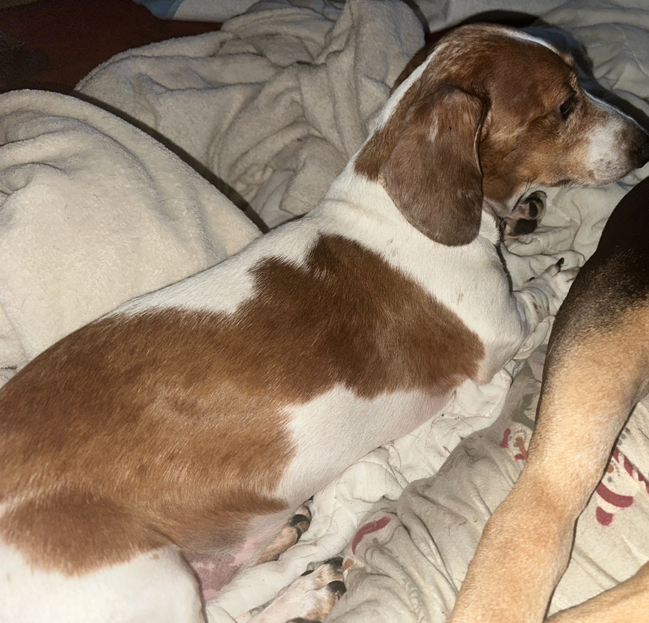 Adopted one year ago from an abusive home. Was on medication to treat aggression and anxiety which he is now weaned off of. He had leaky gut issues from being fed a poor improper diet. That has also been resolved with restoring his gut health. He is such a cuddle bug and loves to give kisses and sleep right next to you. He also went on a 3 month camping trip and loved it !! He now loves to play with toys and his brother. This is a huge milestone for him as he was aggressive towards the dog in his previous foster home. He no longer is frantic and barking non stop when I leave. He is loved to pieces here , safe at last. He is a 4 year old mini dachshund.