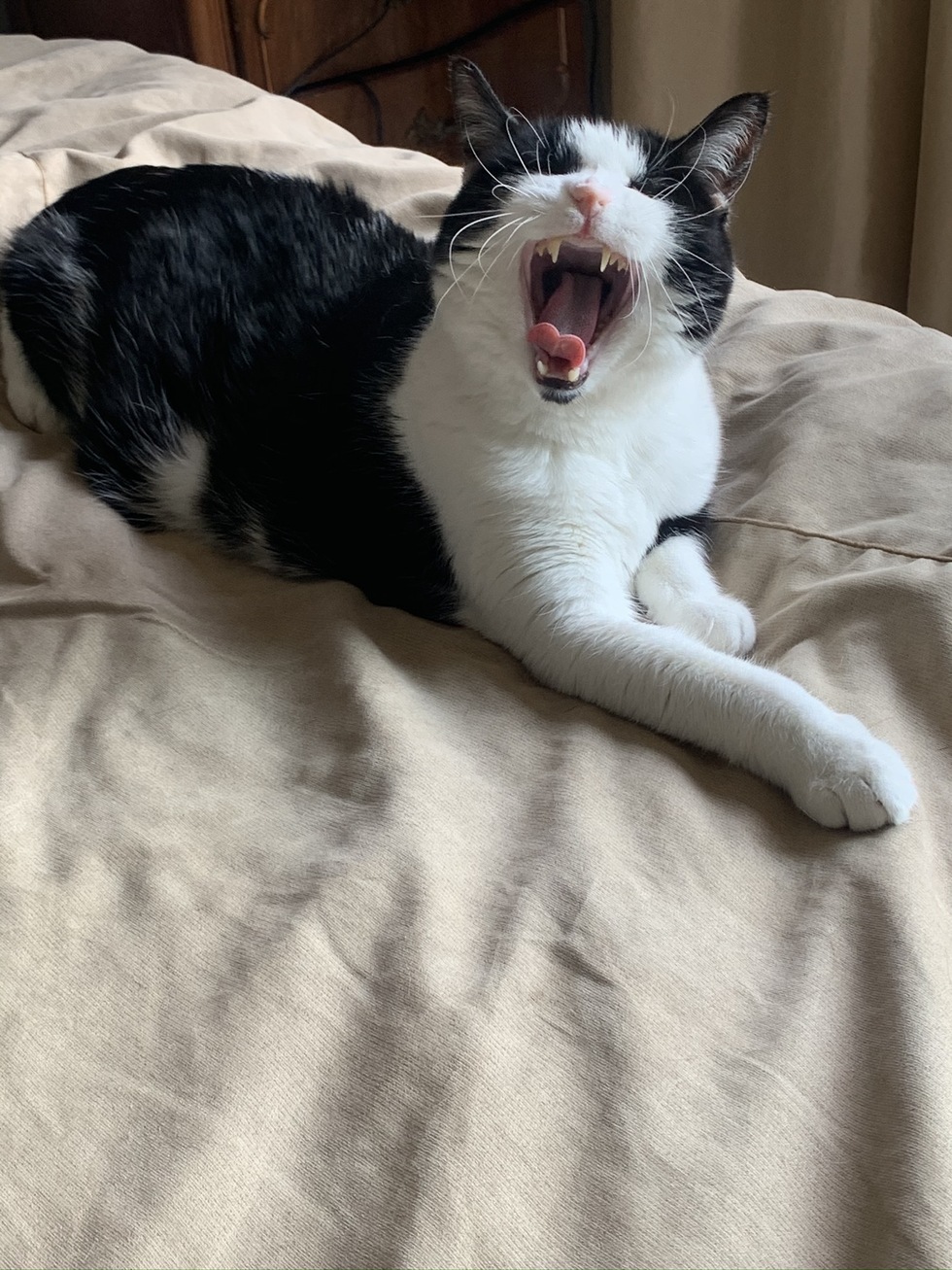A little about me...Bear is a rescue kitty, we adopted him as an adult between ages 1-4(?), he lived to the ripe old age of 16-19(?), during that time he made friends with everyone who came to the house, kept my lap (and sometimes my head) warm, and made my adopted son feel at home. He lost one front claw keeping the dog in line. He was adorable with his little goatee, and we miss him!