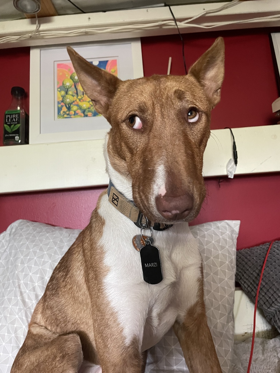 A little about me...Mars is a 2 year old rescue dog from Texas with an unknown past but it didn't seem like she came from a great background, she was very nervous and quiet when we first got her, and that the noisy shelter scene wasn't doing her any good, the four months she was there.