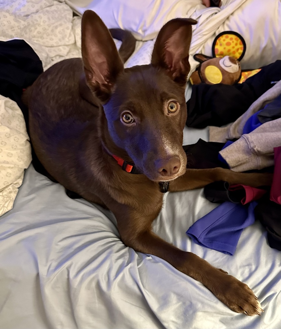 A little about me...Oakley is a "mutt"'from the shelter that turned out to be an Australian Kelpie - she's always up for an adventure and has never met a stranger - she's even friendly with our grouchy cat! So happy we ended up with this breed as she's brought us so much joy and love ❤️