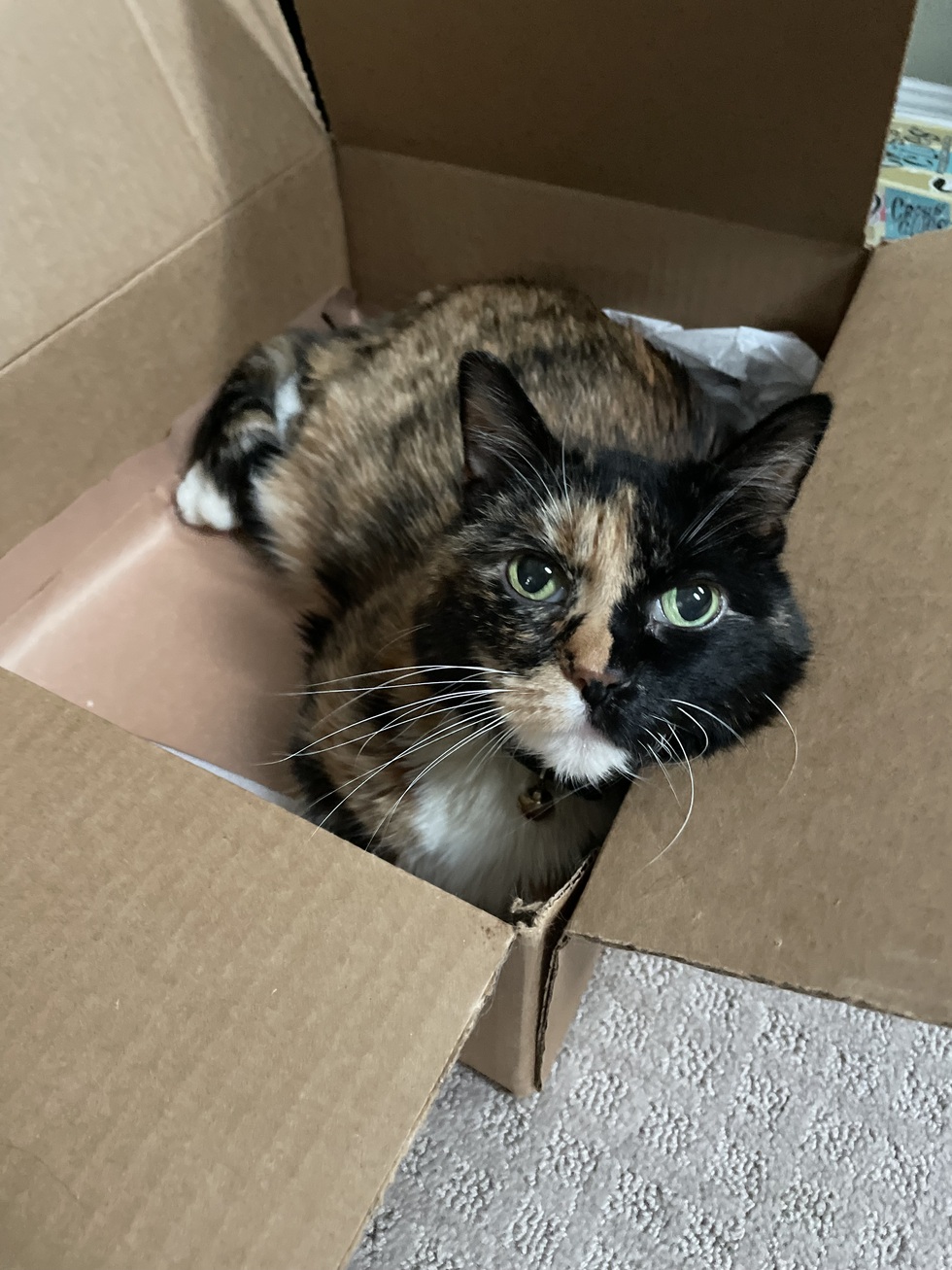 Turtle loves her boxes. Battling diabetes and kicking butt!