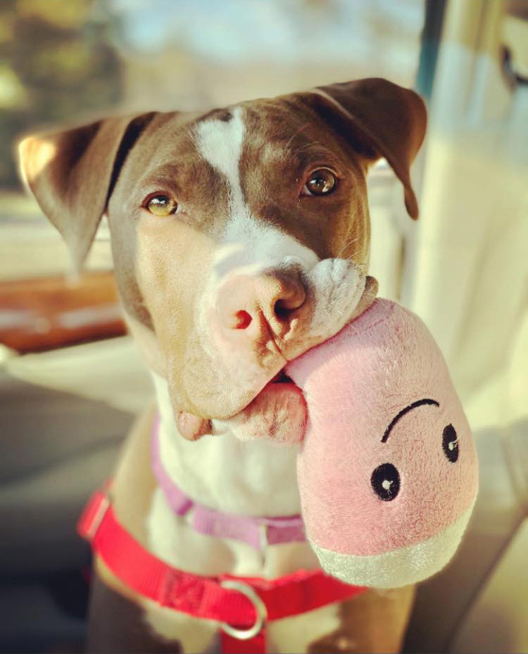 A little about me...We fostered Mooka during Covid but fell immediately in love with her energy and sweet personality. She has been with three different owners previously but found a permanent home with us. She's very special to us because she brought us so much joy and purpose during the pandemic and we couldn't love her more.