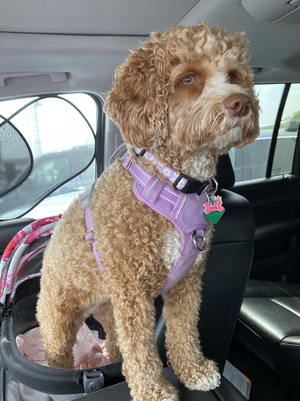 A little about me...FiFI is named after a dog character in a picture book called “Gaston” who lives in Paris who has dog siblings named Foo Foo and Ooh La La. I’m a school librarian and I told my students that if I ever got a dog I would name it FiFi. In this picture, FiFI and I are taking the car ferry over to Washington Island in Wisconsin.