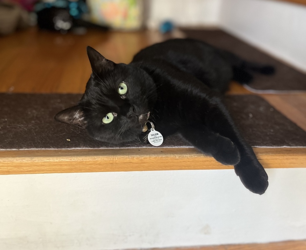 Salem (Rollie) is a little spitfire that is the Ying to Yeti’s Yang. She is a breath of new life to our family after loosing Kitty, then Conan. Salem has also finally accepted Pumba! She brings balance & comedy to our home & she keeps Yeti, our 17.5yr old Maine coon Rangdoll X on his toes! I think this is key to his health & youthfulness. Salem trills & loves to hunt bugs inside & well as squirrels & birds through the glass. We can’t imagine life without her.