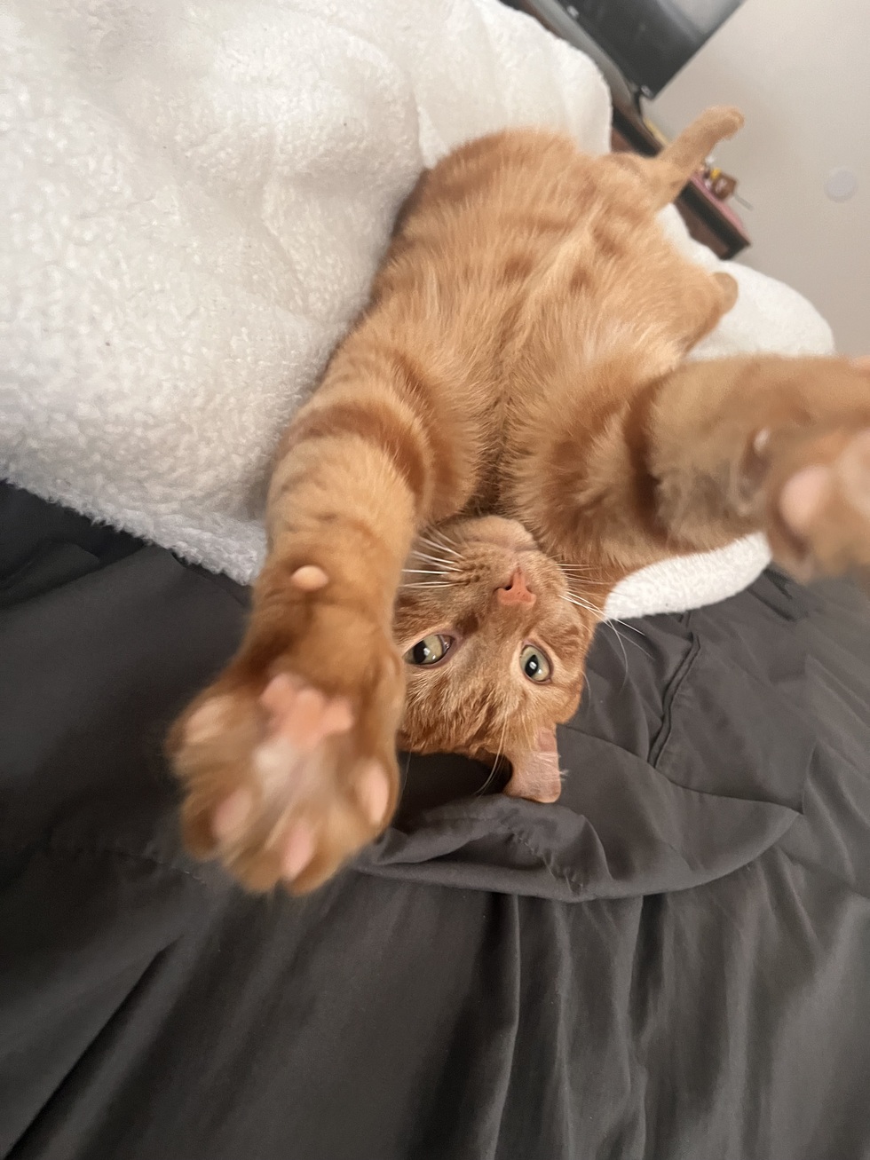Tigger was adopted in March 2022 from Angels for Animals. He is known for his striking dark orange pattern and his love for hide and seek!