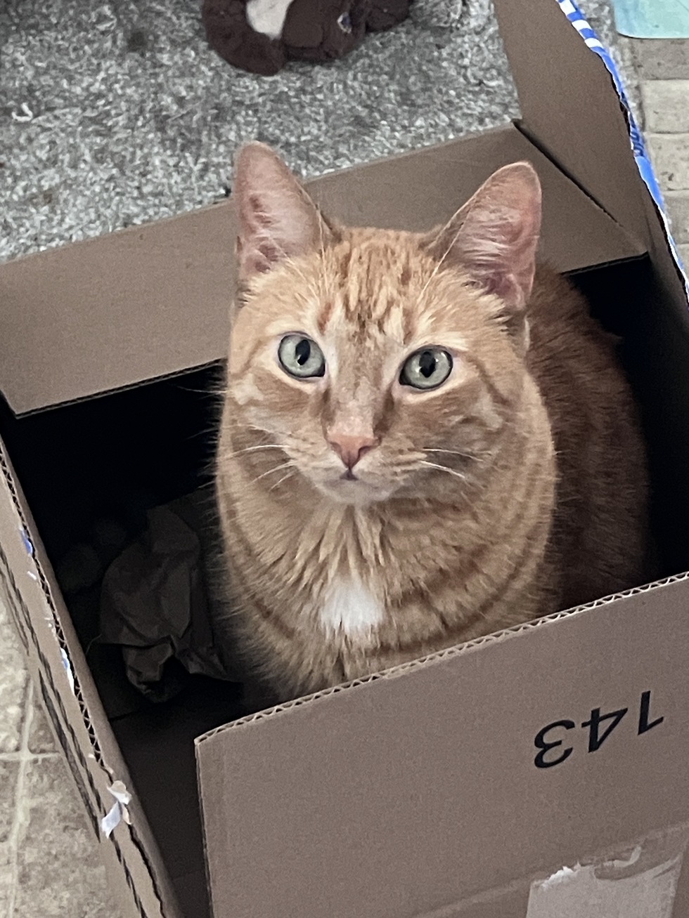 Walter was adopted and became our shop cat. He now has a lady friend and retired from his duties. He is a typical rambunctious ginger with his brothers.
