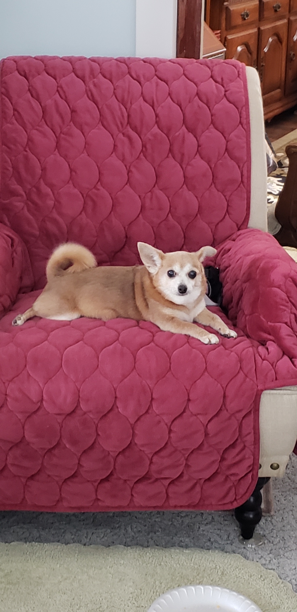Emma is a Chihuahua Corgi mix. She likes relaxing in "her" chair watching TV when she is not outside checking out the wildlife.
