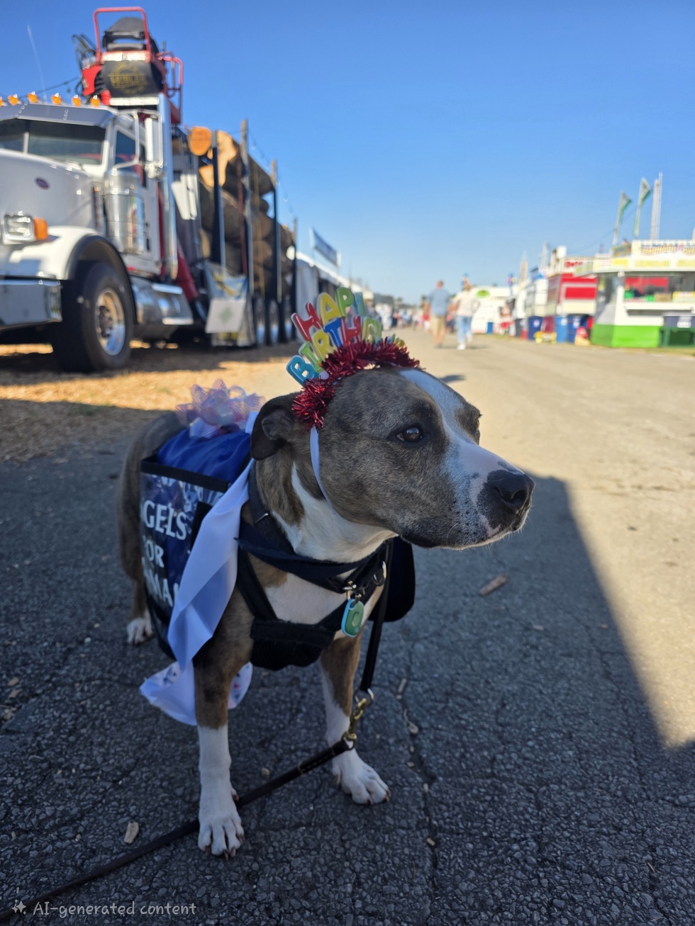 Paddy has been volunteering his time at the fair for angels for animals since 2021. His birthday is 9/2 so he gets to celebrate at the fair with all his friends!