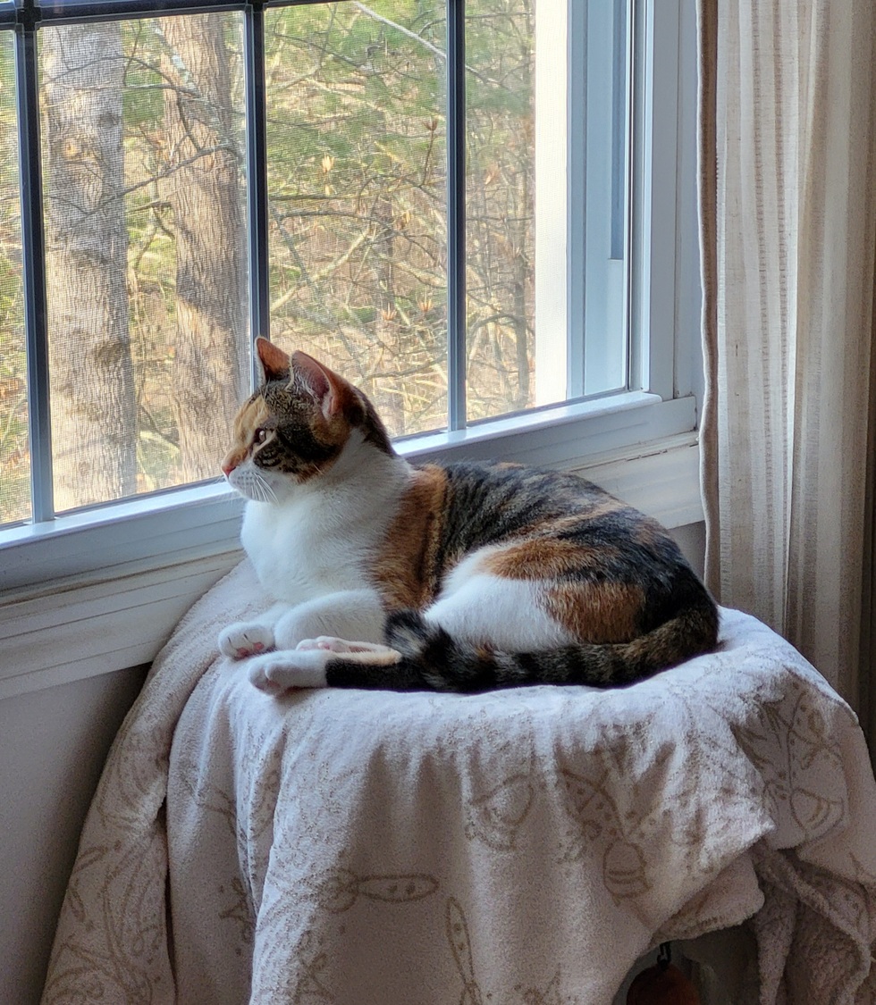 Miss Dior continued to hide, but the moment arrived when this cautious kitty found her courage. With a big “MEOW” and a full-throated purr, she emerged and accepted me as her person. Today Miss Dior is happy and active; she seeks out lap snuggles, watches birds from her window perch, and is very much loved.