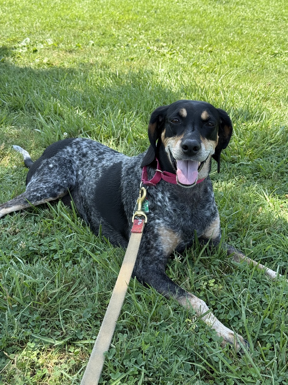 We adopted Luna from Angel’s Retreat in July 2022 after she had a litter of puppies. She went from a shy, quiet dog to the happiest, friendliest girl. Luna loves going on walks, sunbathing, chasing squirrels up trees, playing with her friends, and snuggling with anyone who will give her attention. She has been the perfect addition to our family.