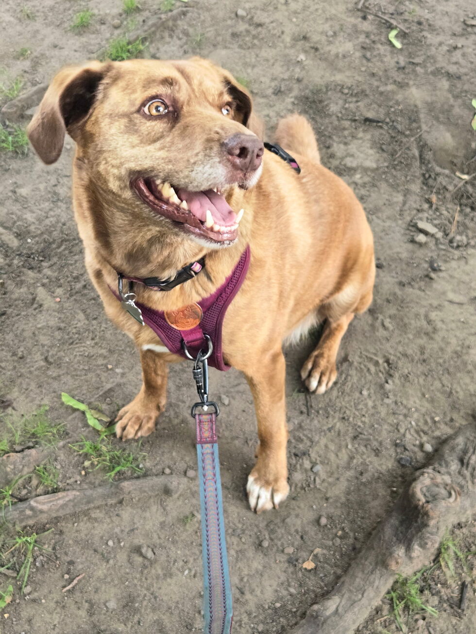 Chloe was adopted from Angel's Retreat almost 3 years ago. She moved to Manhattan for two years and became a big city dog before moving to Jersey City where she can soak in the Manhattan skyline views. No matter where she lives, Chloe loves to chase squirrels and could watch them for hours, just like she is in this photo!