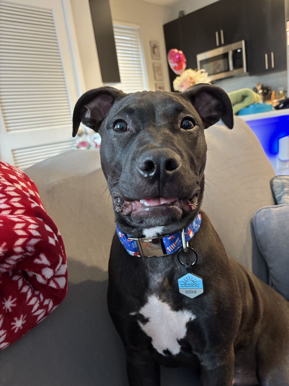 This is Bodhi! He was rescued from Angel’s Retreat in April 2025 as a puppy after being found abandoned in Philly. He has turned out to be the sweetest, silliest and most loving dog. His favorite toy is Lamby and he loves anything peanut butter!