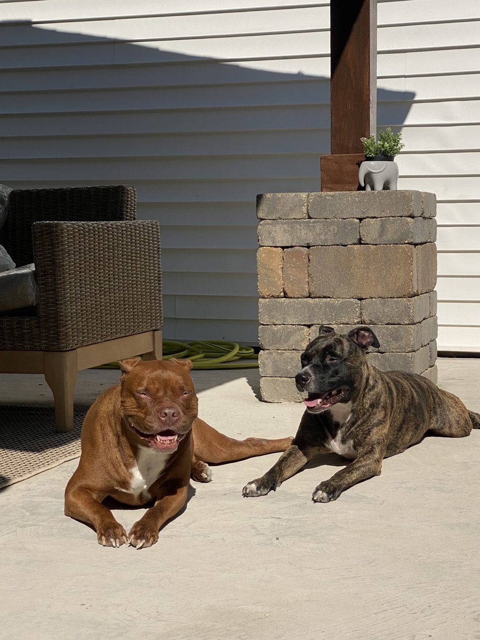 The orange guy is Mauwi, he’s 9 now and has the attitude of a teen and a grandpa. He’s super smart and plays catch all day. My Girls name is Maarble and she’s 8 and just beat cancer this July! She’s in remission from lymphoma and prefers to spend her days at the lake, sun bathing, or in bed. She keeps Mauwi humble and keeps us safe.