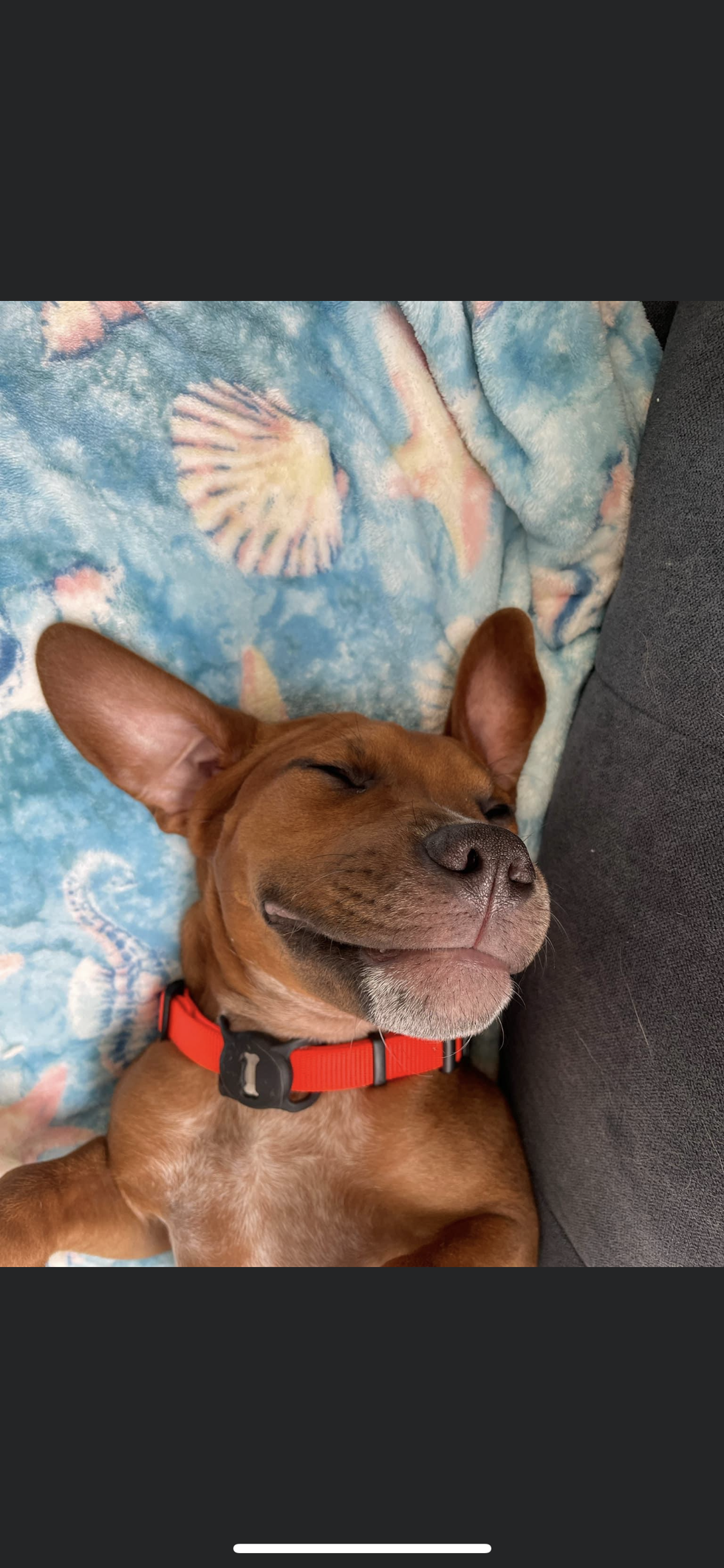 Adopted him in July 2023 from your shelter. He is an old soul and loves golf cart rides and playing with our other dog Penny. He is a cb ouch potatoe and loves cuddling.