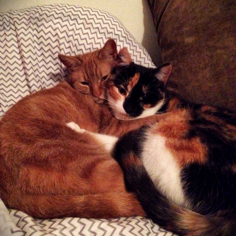 Mama and Ari are a young, bonded mother-daughter pair. They are both very cuddly and love to play together any chance they get! When I get out the laser pointer, they both love to play for as long as they can! Mama and Ari also love watching T.V. with me when I'm just lounging in bed.