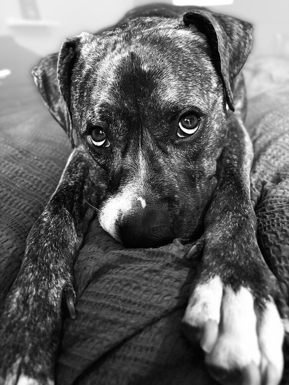 After being left outside APR, adopted and then returned, Copper finally found a forever home. At first shy and reclusive, Copper has blossomed into a snuggly and happy boy, a foster-fail who's become part of our family. We still cannot get enough of those puppy eyes!