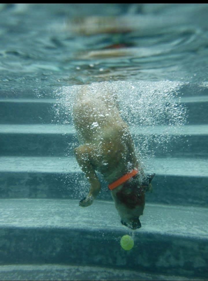 We call this the Parka Plunge! Parka loved tennis balls & pools, this was her happy place