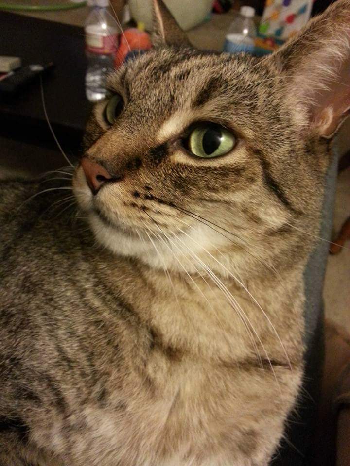 Pet's Story or BioMonster found us at 6 months after living on the streets for an unknown amount of time. It was obvious that he had had a home a one point but was dumped. He came running to us meowing and once he sat himself in my lap he knew he had found safety (and a sucker for small helpless animals). Now at 11 he spends his days sleeping, watching birds, keeping a watchful eyes over two small children and silently judging his owners.
