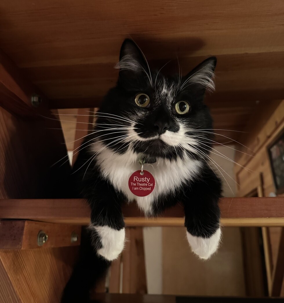 Pet's Story or BioRusty was a feral kitten living in the storm drainage pipe at the creek behind the Rustic Theatre in 2022. We would feed and try coax this little kitten out but then setting up for one of our Saturday outdoor events, he suddenly came forward, bold and full of personality and just blended in. He was like, ok I'm ready for you to love me! We adopted him as the Rustic Theatre Cat and took him to ARF for his initial shots. Being a feral kitty, we decided to get a cat window so he could leave in the morning to go explore. As cats are creatures of routine, it was always a delight when he would arrive back every afternoon with much purring and leg circling. Only to discover what he was doing during the day. Rusty would make his rounds and go visit all the local businesses surrounding the Rustic Theatre. He gave freely of his love and popped in to get a scratchy scratch only to move on to his next location. What a Diva at the Film Festival! We had laid the red carpet below the Photo Wall and he just instinctively went and lay down to groom. He gave everyone so much joy! While he would be reticent of big dogs, he was very social with the friendlier smaller dogs that came in. Rusty was a very prolific gift giver and brought us many many gifts, although at least they were still living! Of course all the birds, chipmunks, that one time he brought up a baby rabbit, (I know!!!!) field mice and "the" lizard. Yes, singular. I eventually put a dot of nail polish on its tail to be sure and it was a return gift. Maybe they had a game? But we always caught all his "gifts" and let them go. It wasn't all cotton balled. He was a warrior of his turf. We had some mean outsiders visit on occasion and he had some bad war injuries. Again ARF to the rescue! Late last year, we bought a cabin and relocated Rusty to his new home. He is now an indoor cat and is thriving. He no longer needs to fight to protect his territory or hunt for those gifts. He finds the sunny spots and basks in comfort. He deserves to win this competition because Rusty is a beautiful creature with an old soul that brought so much joy to the local downtown business community of Idyllwild